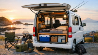軽バンの給排水システムとシンク構成はこちらで詳しく解説しています。